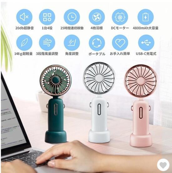熱中症対策 ハンディファン 静音 ハンディ扇風機 首掛け扇風機 卓上扇風機 携帯扇風機 手持ち扇風機